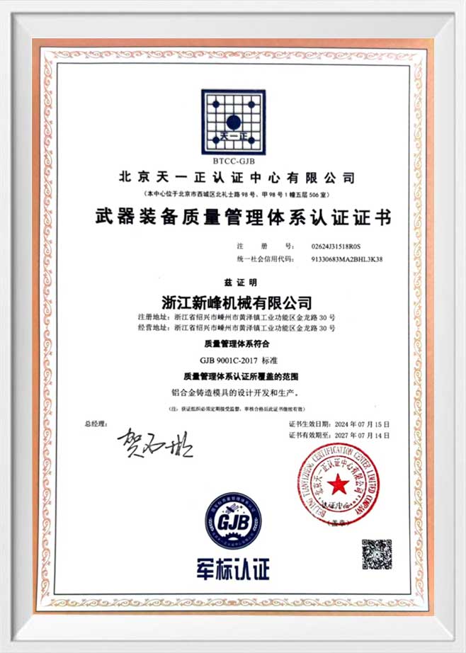 Certificazione del sistema di gestione della qualità delle attrezzature per armi